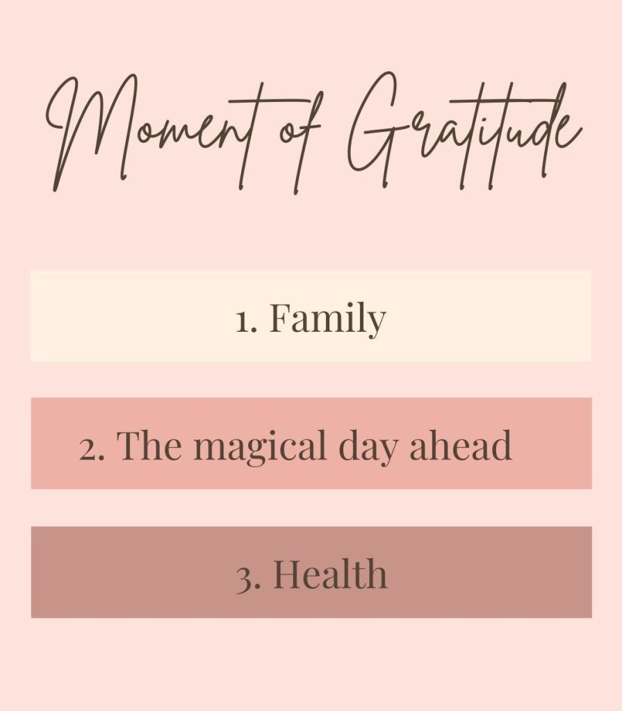 1. Give Gratitude. Instead of picking up my phone first thing in the morning, I remember to count 3 blessings before even getting out of bed. I love this little moment of gratitude because it keeps me present and doesn’t start my day on a stressful note.