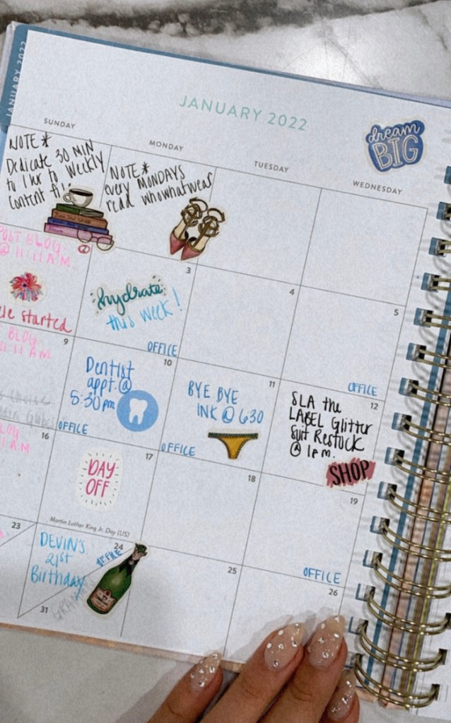 8. 2022 Planner. In preparation of the new year, I definitely made sure to have a brand new planner. This always allows me to look forward to get my thoughts, plans and goals clear visually on paper. I’ve been using the Eccolo planners for three years now and I love how I have enough space to write things down that need to get done from my day-to-day to everything blog related while keeping both to-do lists separated. It also comes with some aesthetically pleasing stickers to add a little bit more glam to your days.