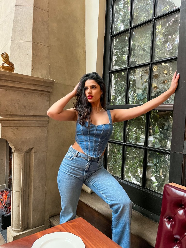 This modern lingerie-inspired top elevates the denim fabric for a chic look. Take this from day to night with this sweetheart bustier, it’s perfect for a brunch outing with your girls or date night with your beau. I wore this outfit for a brunch and decided on a red lip which tapped into a Sofia Loren-esque/old Hollywood style.